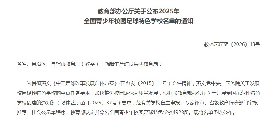 r近日,教育部办公厅正式公布《2025年全国青少年校园足球特色学校名单》,经学校自主申报、专家评审、省级审核、社会公示等程序,全国共认定4928所学校。枣庄市共有13所学校成功上榜,彰显本市校园足球发展的坚实成果。
